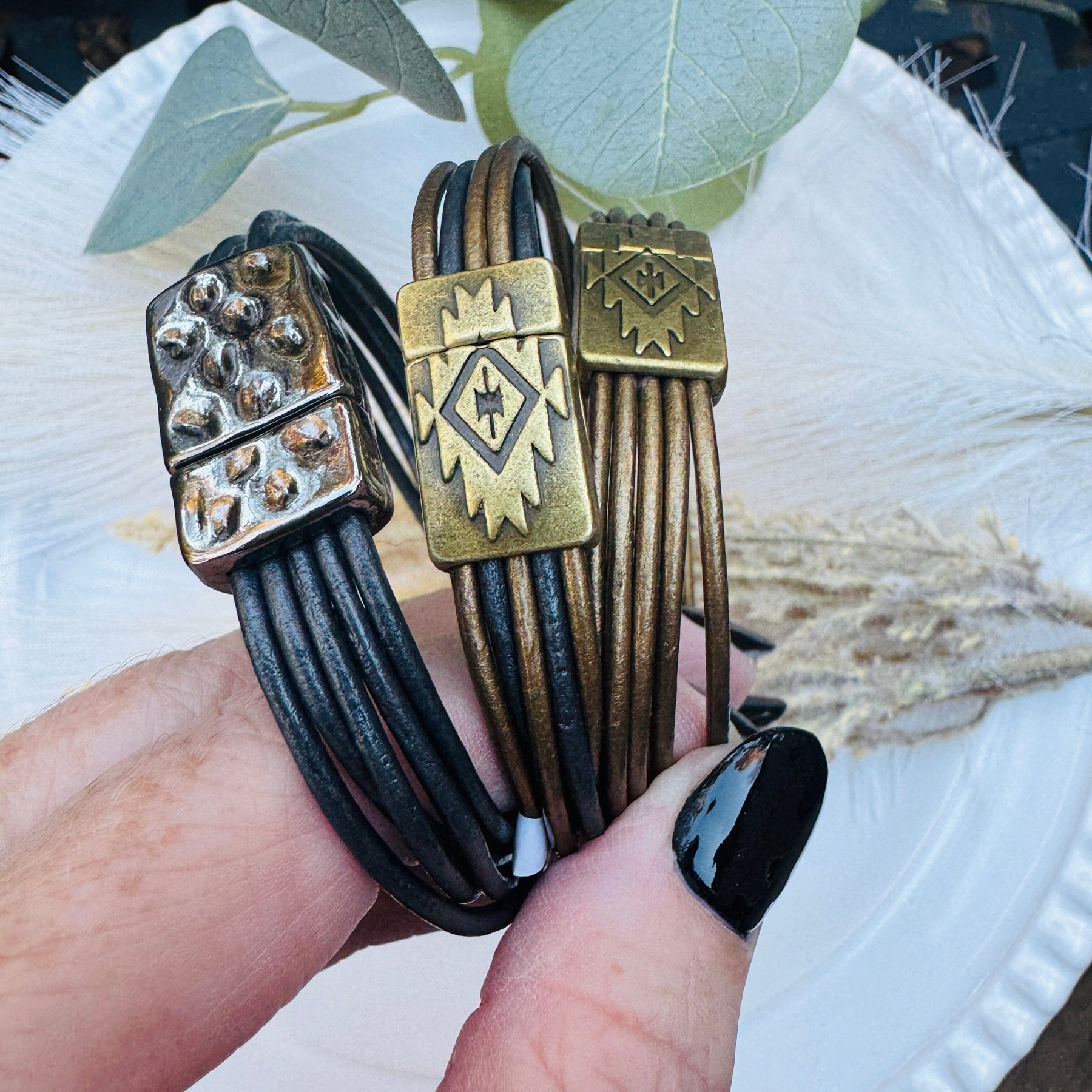 Our Magnetic Wraps are more than just jewelry — they’re little reminders of strength, style, and connection. Each one is handcrafted from genuine leather and designed to look like a stack of layered bracelets, with the ease of a single magnetic clasp.